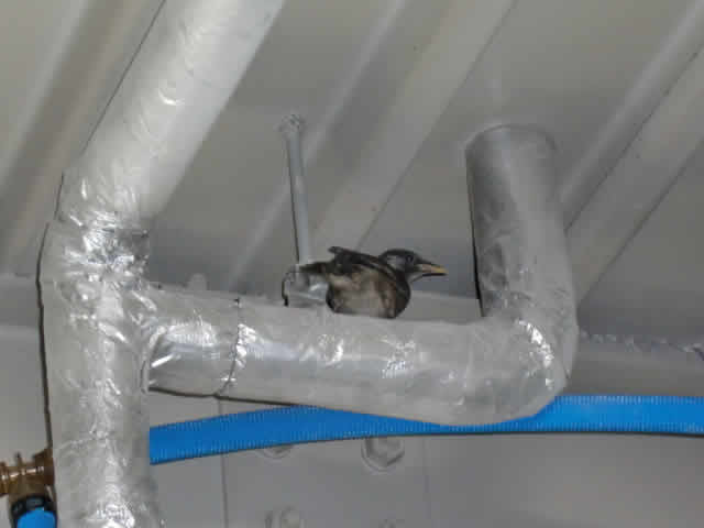 急いで駆け付けますと、鳥が迷いこんでいるではありませんか