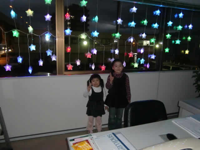 冬の風物詩partⅡ 2009年11月6日 最終更新日時 : 2009年11月6日 kawazoe イルミネーションが増えましたので、再びアップします。 昼間の様子です。 最初の頃に比べてかなり増えました。 わくわくしながら夜が来るのを待って 再び点灯 おお~またまたビューティフル 事務所内の様子です。 うちの愛娘たちもついでにピース 照明を消したら室内でも楽しめました。 Follow me!