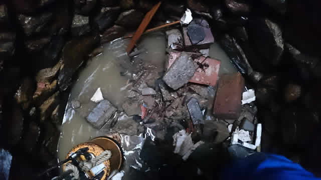 問題は底を浚う作業です。水を水中ポンプで汲み上げいざ!瓦礫が…