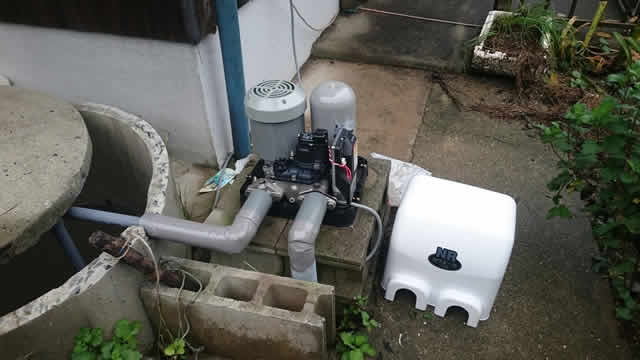 16年前に取り替えた浅井戸ポンプです。その間何事もなく稼働してたのですが、ファインセンサーの不良でした。外観、先の事を見据えての更新となりました。