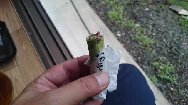 一口食べますと、抹茶の薫りが口の中で広がり、あんこが窓から「こんにちは!」状態です…