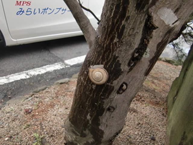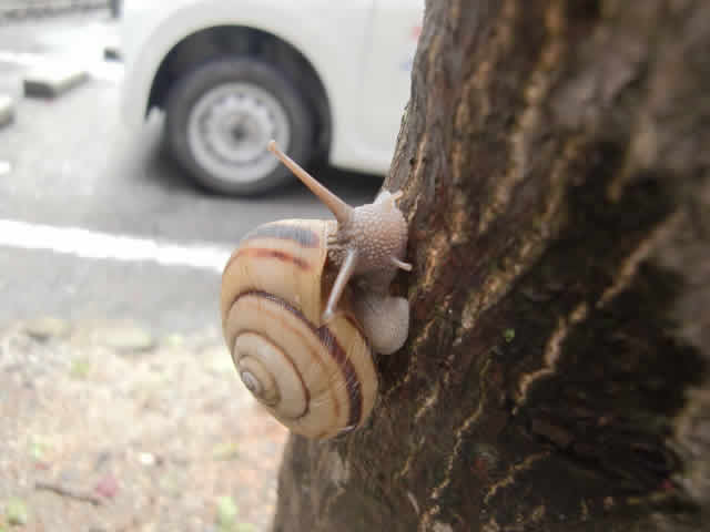 今日はお客様の所へ打ち合わせです。ふと目の前の木を見ますと目カタツムリがexclamation通称(でんでんむし)黒ハート