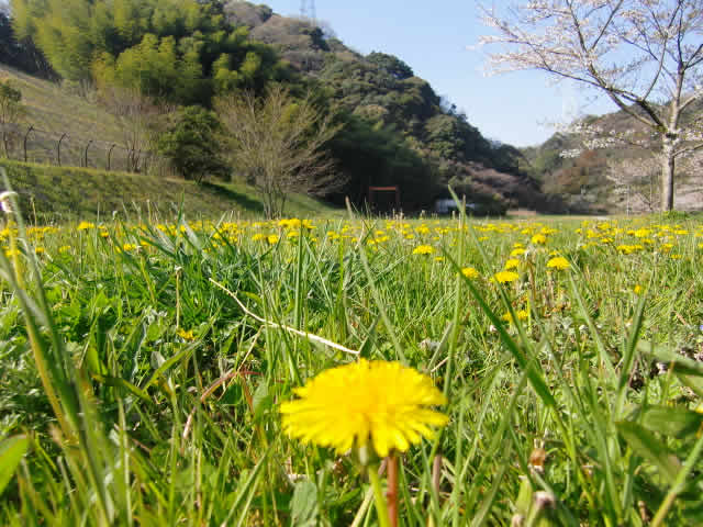 さてさて次の現場ですわーい(嬉しい顔)緑豊かな、ゴルフ場の私有地です。たんぽぽの花が咲き乱れていましたのでるんるん