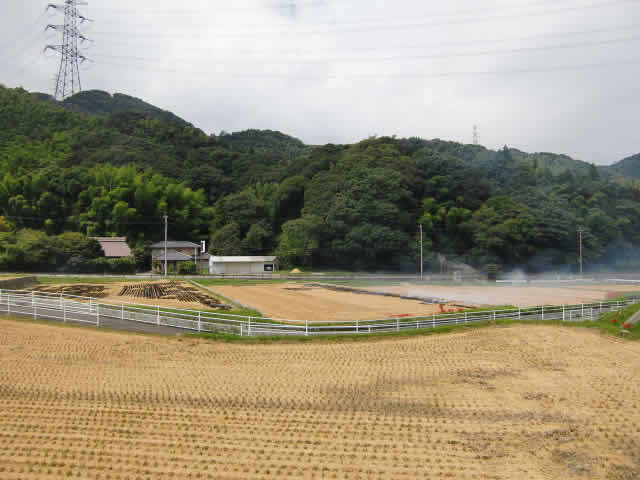 真夏は緑色のじゅうたんを広げ田が、今では稲刈りが終わり黄金色ぴかぴか(新しい)のじゅうたんを広げ籾殻を焼く煙が何となく懐かしさを感じましたるんるん