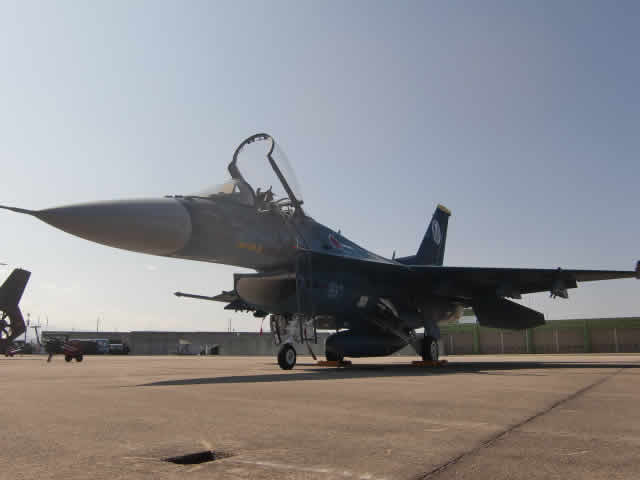 展示棟にてF15イーグルとF2バイパーゼロが展示