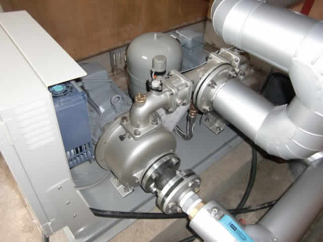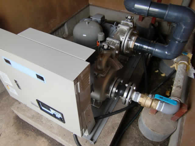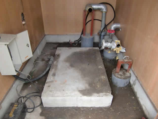 問題はポンプ室にありました。ポンプ室に通気が無く、真夏日には室温が60℃近く又はそれ以上の温度になるとか…温度変化での配管の膨張、収縮による抜けではないかと…