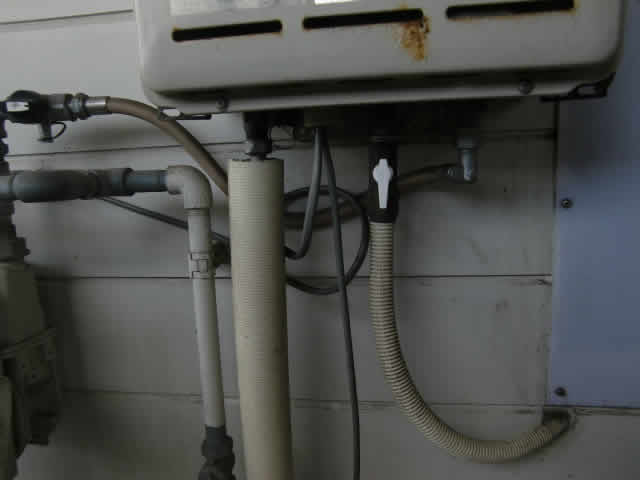 瞬間湯沸かし器の1次側に軟水機を切り込みました![]()