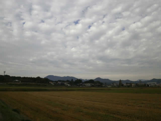 稲刈りの済んだ田んぼと秋の空が平和でのどかな町を象徴しています![]()