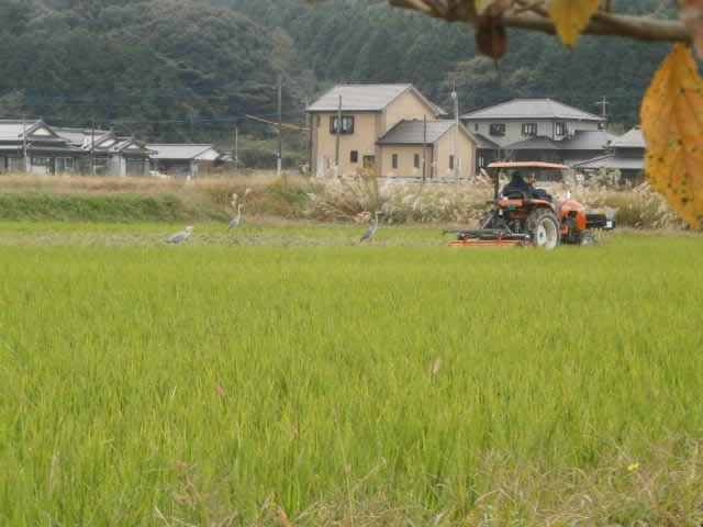 トラクターの後ろで鳥が何やら啄ばんでいました。土の中にいるミミズや昆虫でしょうか
